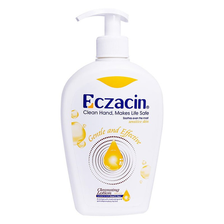 پوست دست و صورت کاملا خیس را با مقدار کافی از لوسیون شوینده ملایم اگزاسین به آرامی ماساژ دهید، سپس با آب ولرم آبکشی نمایید.