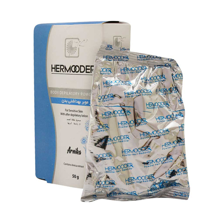 پودر موبر تکی حساس هرمودر حاوی عصاره آرنیکا. پودر موبر داخل جعبه را با مقدار مناسب از آب گرم مخلوط نموده تا خمیری یکنواخت حاصل شود. خمیر را بر روی قسمتی از پوست که تمایل به زدایش مو وجود دارد استفاده نمایید. پس از ۵ دقیقه خمیر را بوسیله کاردک پلاستیکی از سطح کوچکی از پوست بردارید. درصورتیکه موزدایی به طور کامل انجام نشده بود خمیر را ۲ دقیقه دیگر نیز بر روی پوست نگه دارید. سپس خمیر را با کاردک پاک نموده و محل مورد نظر را با آب کاملا آبکشی نمایید.