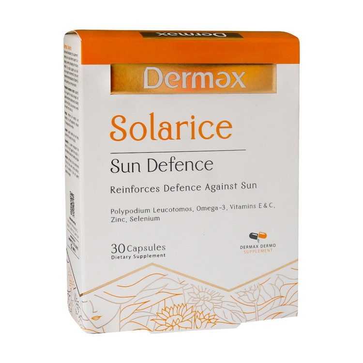 قرص سولاریس درمکس با داشتن ترکیبات مغذی و مفید، محافظ پوست و چشمها در برابر نور خورشید است. قرص ضد آفتاب سولاریس به تقویت ساختار دفاعی پوست کمک کرده و از ایجاد چین و چروک جلوگیری میکند. همچنین در کمک به تولید ویتامین D۳ طبیعی و تقویت سیستم ایمنی بدن در برابر رادیکالهای آزاد تاثیر بسزایی دارد. از ویژگیهای مهم سولاریس درمکس میتوان به این موضوع که فاقد سویا، شیر، گندم، گلوتن، تخم مرغ و هر گونه شیرین کننده و مواد نگهدارنده است، اشاره کرد؛ از این رو عوارضی را برای مصرف کنندهها ایجاد نخواهد کرد. قرص ضدآفتاب سولاریس توسط شرکت داروسازی پارس حیان و در بسته بندی ۳۰ عددی تولید و ارائه میشود.