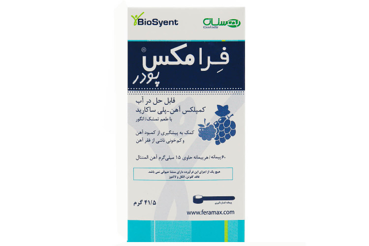 پودر فرامکس توسط شرکت بیوساینت فارما کشور کانادا تولید و در قوطی های 41.5 و 83 گرم عرضه می گردد. هر قاشق چای خوری از این مکمل حاوی 60 میلی گرم آهن می باشد. ماده معدنی آهن در ساخت گلبول های قرمز، تولید انرژی، عملکرد سلولی، رشد عصبی و ... نقش دارد لذا دریافت مقدار کافی از آن حائز اهمیت است.