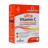 قرص اولترا ویتامین C 500 میلی گرم ویتابیوتیکس به تامین ویتامین c و سلامت سیستم ایمنی بدن کمک میکند. این مکمل تغذیهای مخصوصا جهت مصرف توسط ورزشکاران، افراد بالای 50 سال و افراد پرمشغله مناسب است. با توجه به اینکه ویتامین ث در بدن ساخته نمیشود، نیاز به دریافت مداوم آن وجود دارد. این ویتامین که به نام اسید آسکوربیک نیز شناخته میشود، یک ماده مغذی محلول در آب بوده که خاصیت آنتی اکسیدانی دارد. از این رو به محافظت از سلولها در برابر آسیبهای ناشی از رادیکالهای آزاد کمک میکند. علاوه بر این قرص ویتامین سی جذب آهن از غذاها را بهبود بخشیده، و به ساخت کلاژن (پروتئینی که برای کمک به بهود زخمها لازم است) کمک میکند. حفظ سلامت و زیبایی پوست، استحکام بسیاری از بافتهای پیوندی بدن مانند غضروفها، رگهای خونی، دندان و استخوان و … از دیگر فواید دریافت کافی ویتامین c به شمار میآید.
