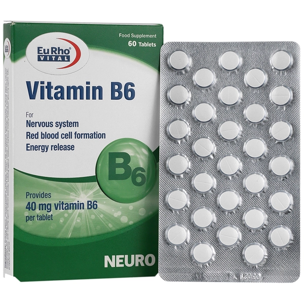 ویتامین b6 یوروویتال، تامین کننده ب6 روزانه بدن کمک به ساخت گلبولهای قرمز و پیشگیری از کم خونی سیدروبلاستیک تقویت کننده سیستم ایمنی و موثر در عملکرد صحیح سیستم عصبی ب6 یوروویتال، مفید برای کاهش تهوع و استفراغ دوران بارداری نقش در کاهش علائم سندروم پیش از قاعدگی (PMS) ویتامین B6یوروویتال، بهبود دهنده متابولیسم کمک به کاهش سطح هموسیستئین خون و کاهش خطر بیماریهای قلبی روش مصرف: بزرگسالان روزانه یک عدد قرص با میزان کافی آب، ترجیحا همراه غذا میل شود. از مصرف بیش از میزان توصیه شده خودداری گردد.