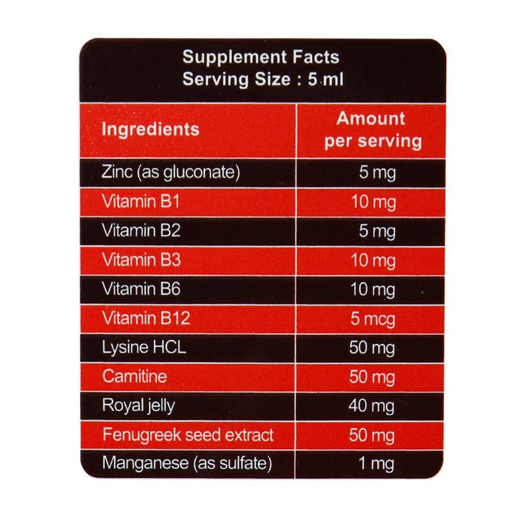 شربت مقوی ترس اوریکس ترکیبات مختلفی داشته که هرکدام به نحوی بر روی بدن تاثیر میگذارند؛ ویتامینهای B1، B2، B3، B6، B12 خواص بسیار زیادی برای بدن دارد؛ به عنوان مثال علاوه بر حفظ سلامت کلی بدن، باعث تقویت سوخت و ساز و در نتیجه به وجود آمدن احساس گرسنگی در فرد میشود؛ کارنیتین هم ترکیب دیگری است که علاوه بر کاهش چربیها و تبدیل آنها به انرژی، باعث افزایش اشتها میشود. رویال ژلی هم با تقویت سیستم ایمنی و جلوگیری از مشکلات گوارشی، جذب مواد غذایی را در بدن تسهیل میکند. در آخر، شنبلیله هم باعث افزایش اشتها و در عین حال کاهش وزن میشود.