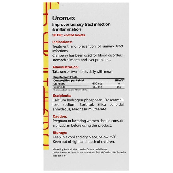 - هر قوطی قرص Uromax مناسب استفاده به مدت 30 روز می باشد.