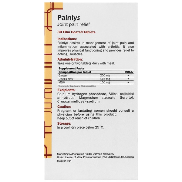 - پین لیز، فرآورده طبیعی حاوی زنجبیل، گیاه پنجه شیطان و ترکیب متیل سولفونیل متان (MSM)