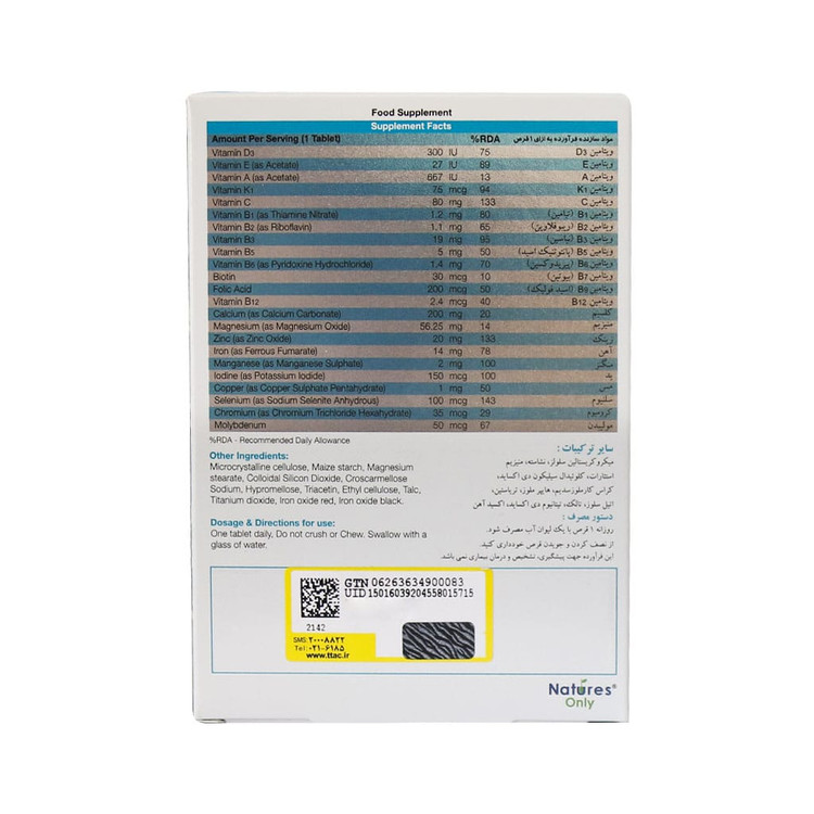 جدول ترکیبات مولتی ویتامین بایوبیسیکس نیچزراونلی