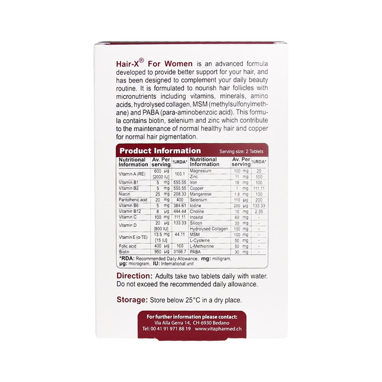 - هر جعبه از قرص Hair X بانوان مناسب برای استفاده به مدت 30 روز است.