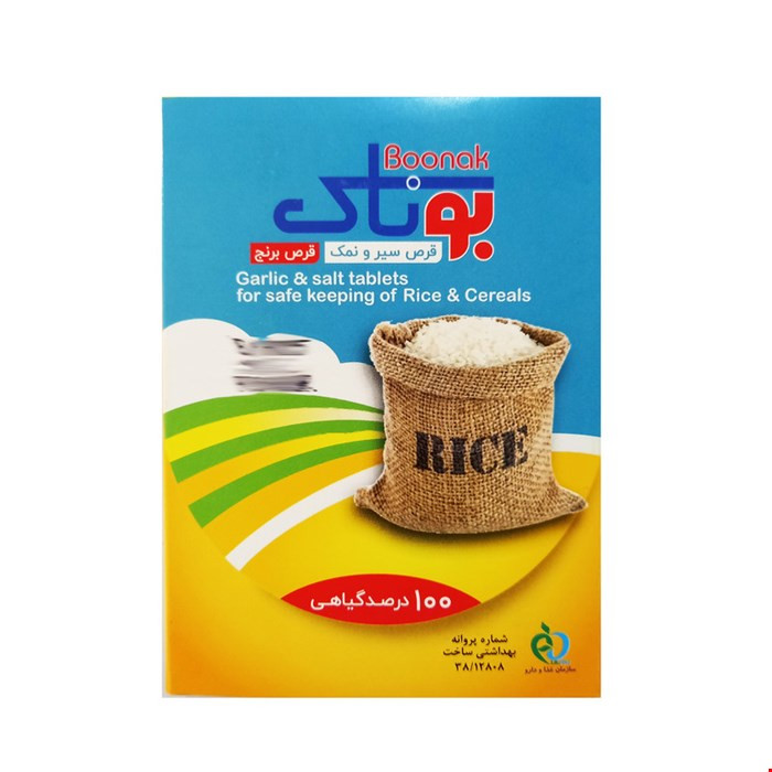 - هر بسته از قرص برنج بوناک حاوی 12 قرص 5 گرمی می باشد.