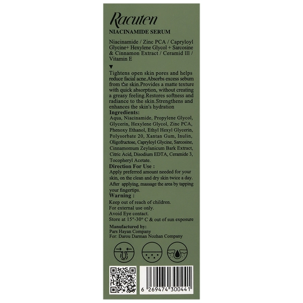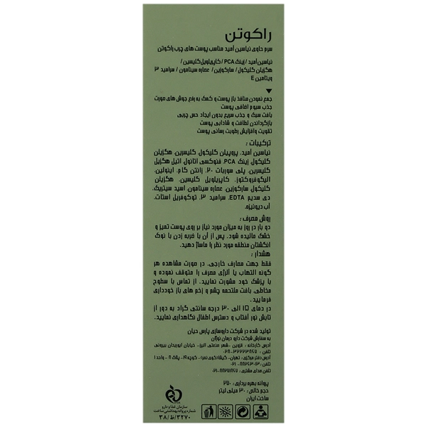 - سرم نیاسینامید پوست چرب راکوتن، کمک به کاهش جوش و منافذ باز