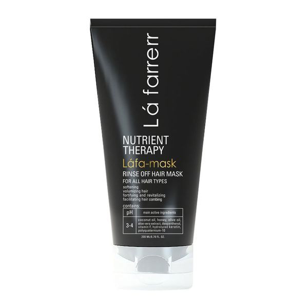 ماسک مو مغذی و تقویت کننده لافارر حاوی روغن نارگیل، عسل، کراتین هیدرولیز شده، روغن زیتون، عصاره آلوئهورا و ویتامین F میباشد که موجب لَخت کنندگی سریع، افزایش استحکام ساقه مو، نرم کنندگی موثر و افزایش خاصیت ارتجاعی مو میگردد. عصارههای گیاهی به کار رفته در این ماسک مو باعث تسهیل در شانه زدن و محافظت مو در مقابل حرارت سشوار، جلوگیری از ایجاد موخوره و همچنین ایجاد درخشندگی و حس شادابی در موها میشوند.