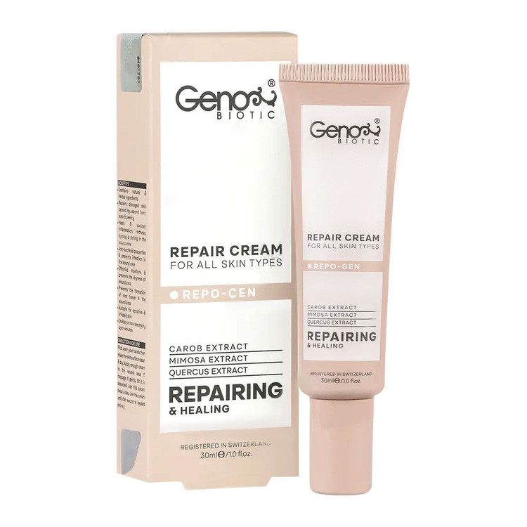 روزانه پوست بدن ممکن است تحت تاثیر عوامل مختلفی مانند خراشیدگی، ضربه، سوختگی و غیره دچار زخم و آسیب دیدگی شود. در حالت طبیعی، پس از بروز آسیب دیدگی، سلولهای پوست فرایند ترمیم را آغاز میکنند. عوامل مختلفی میتوانند باعث اختلال و کند شدن روند طبیعی ترمیم زخم شوند که از جمله مهمترین این عوامل می توان به مراقبتهای نامناسب، استرس، بیماریهای زمینهای (دیابت)، ضعف سیستم ایمنی، خشکی محل زخم، سالخوردگی و غیره اشاره کرد. اختلال در ترمیم زخم عوارضی را به همراه دارد که عفونی شدن زخم و خطر به جای ماندن جای زخم (تشکیل اسکار) از آن جمله است. کرم ترمیم کننده پوست ژنوبایوتیک، یک کرم تخصصی برای التیام آسیب دیدگیها و زخم های ایجاد شده در پوست است. این کرم به گونه ای طراحی شده است که با داشتن ترکیبات خاص و منحصر به فرد، میتواند در تسکین و ترمیم زخم ها و آسیبهای مختلف پوستی، اثر ارزشمندی داشته و مانع از بروز عفونت و یا تشکیل اسکار شود.